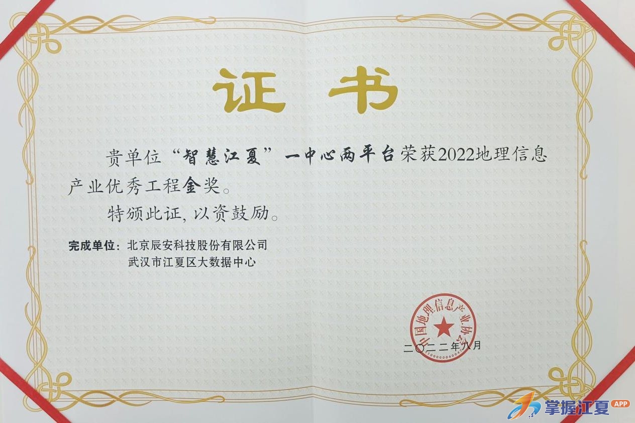 喜讯!“智慧江夏”一中心两平台项目荣获“2022中国地理信息产业优秀工程”金奖