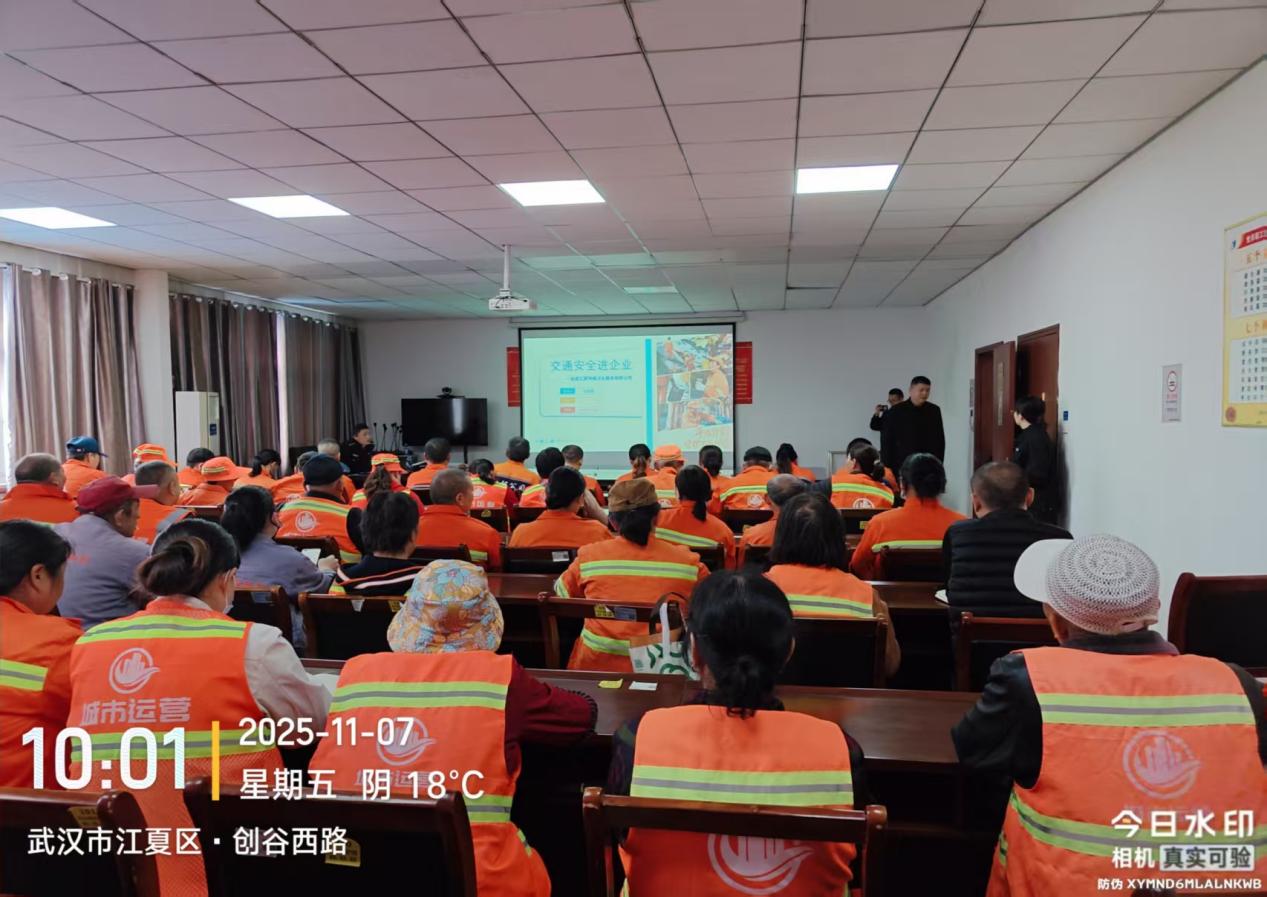 发布日期:2025-11-10 09:00 文章来源:江夏城市资产运营管理有限公司 编辑:李小琴为进一步强化一线环卫工人安全意识,筑牢作业安全防线,有效预防和减少交通事故,11月7日上午,江环公司组织江夏区“城市大管家”项目环卫工人,开展交通安全专项培训活动。通过“理论+实操”“案例+互动”的立体化教学模式,为奋战在一线的“城市美容师”筑牢安全屏障,助力冬季城市环境保障提质增效。