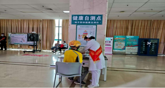 (一)服务方式场景化转型。针对新就业群体“早出晚归”的工作特性,纸坊街卫生服务中心增设“快诊通道”,实现挂号、就诊、取药全流程30分钟内办结;在中心大厅设置“健康驿站”,配备急救箱、充电插座、休息座椅,同步提供线上问诊入口,满足碎片化健康咨询与临时休憩需求。区人民医院则聚焦骑手职业高发健康问题,安排骨科、康复医学科、急诊科、消化内科等专家轮值坐诊,针对骑手常见的肌肉劳损、关节损伤、胃部不适、急性外伤等问题提供快速、专业的诊断和治疗方案,通过简化就诊流程、减少非必要等待,为骑手节省宝贵时间。