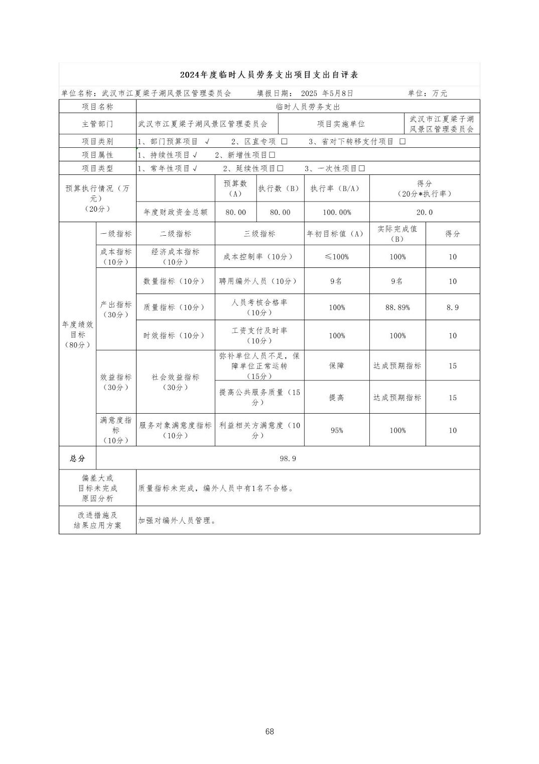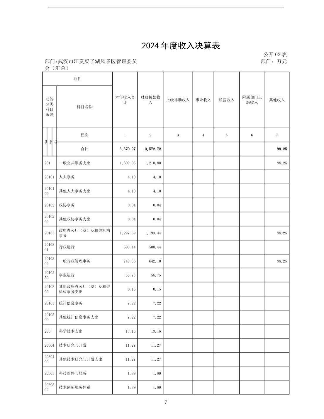 武汉市江夏梁子湖风景区管理委员会(汇总)2024年2024年度部门决算公开文件(武汉市)