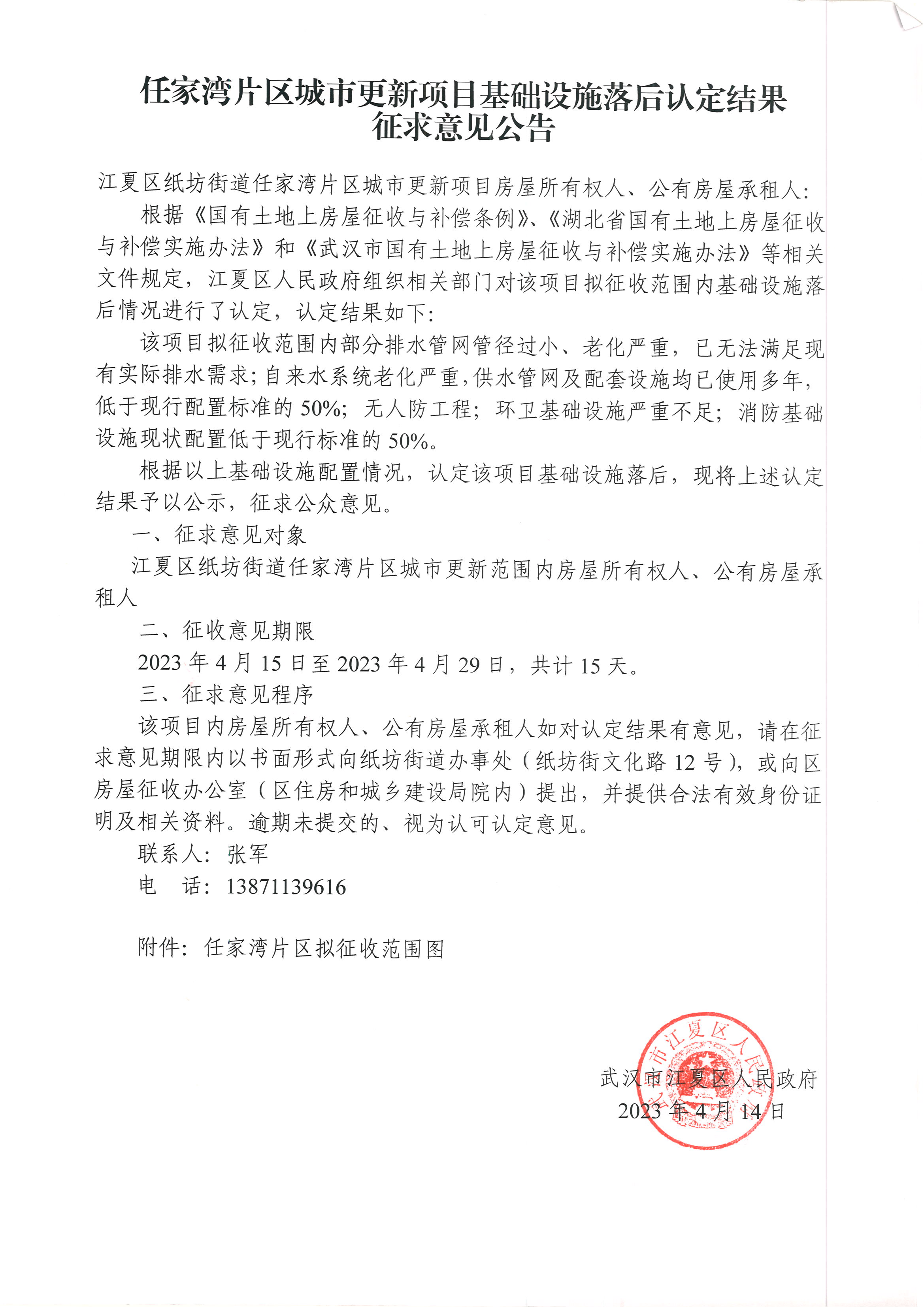 任家湾片区城市更新项目基础设施落后认定结果征求意见公告