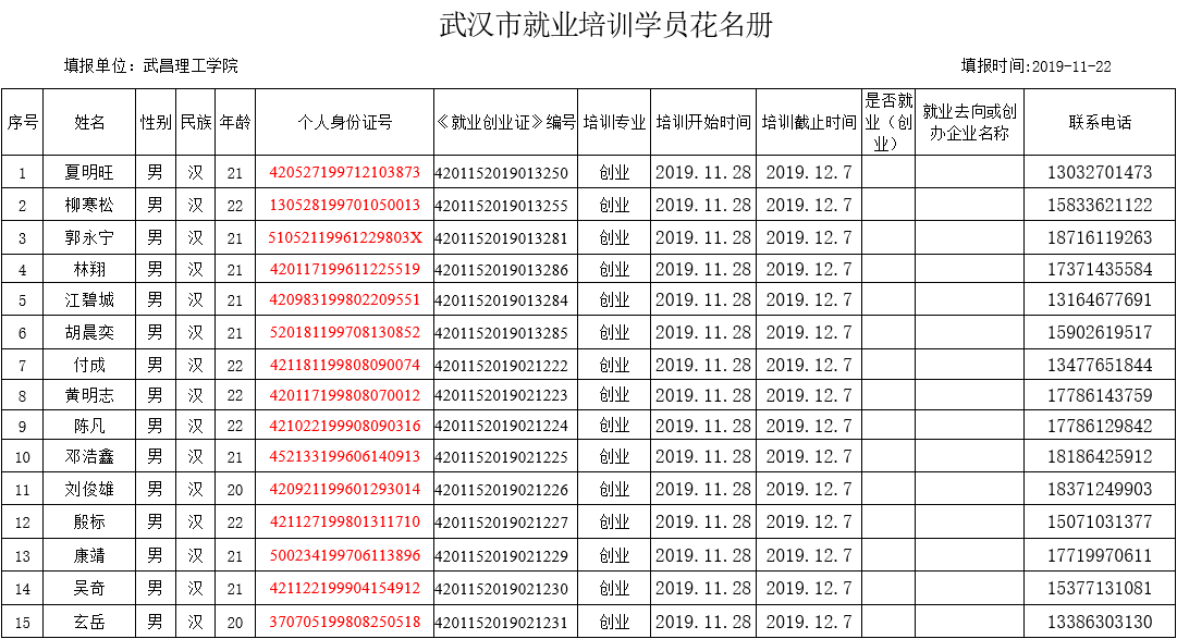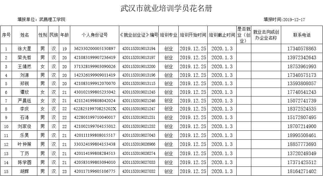 江夏区武昌理工学院2020年6月份就业培训补贴公式