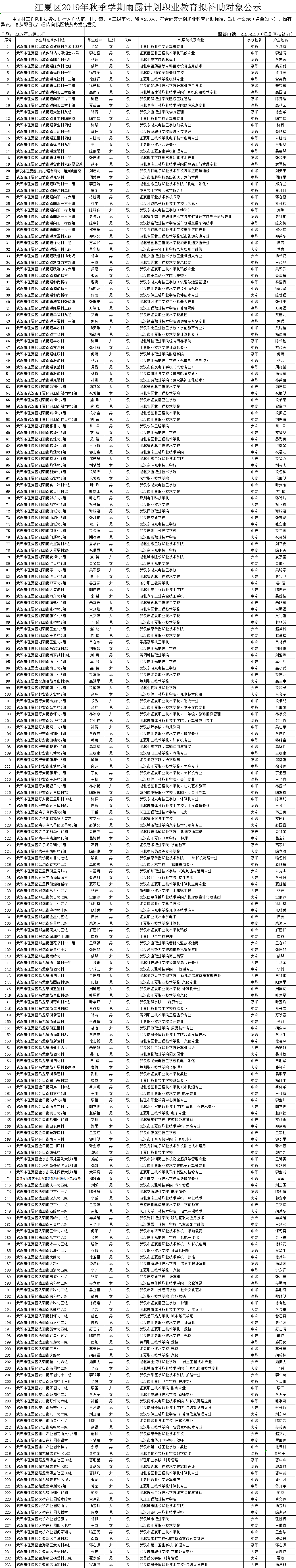 江夏区2019年秋季学期雨露计划职业教育拟补助对象公示