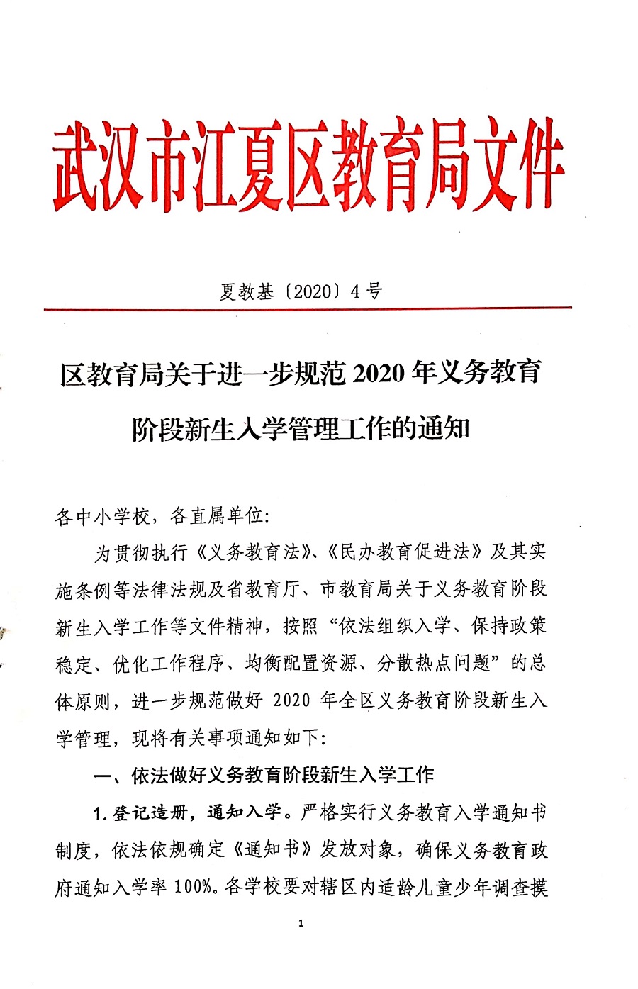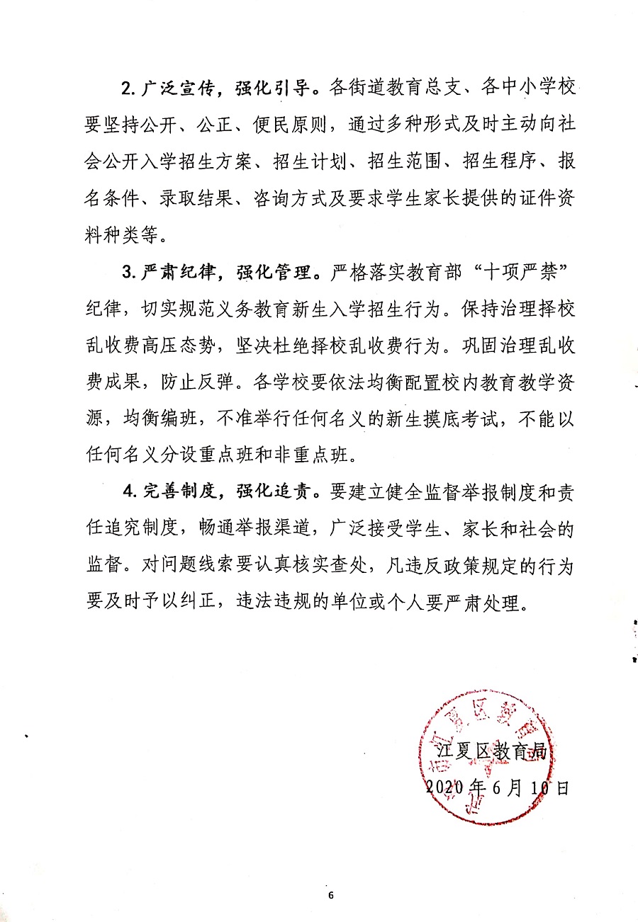 江夏区教育局关于进一步规范2020年义务教育阶段新生入学管理工作的通知