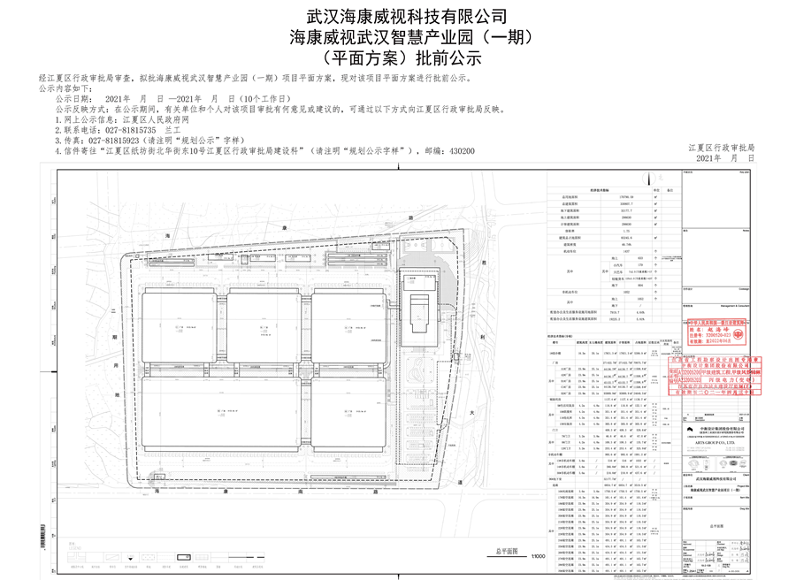 武汉海康威视科技有限公司海康威视武汉智慧产业园(一期) (平面方案)批前公示