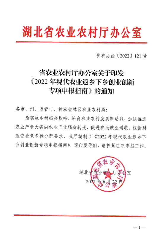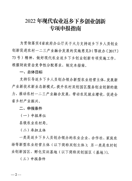 转发省农业农村厅办公室关于印发《2022年现代农业返乡下乡创业创新专项申报指南》的通知