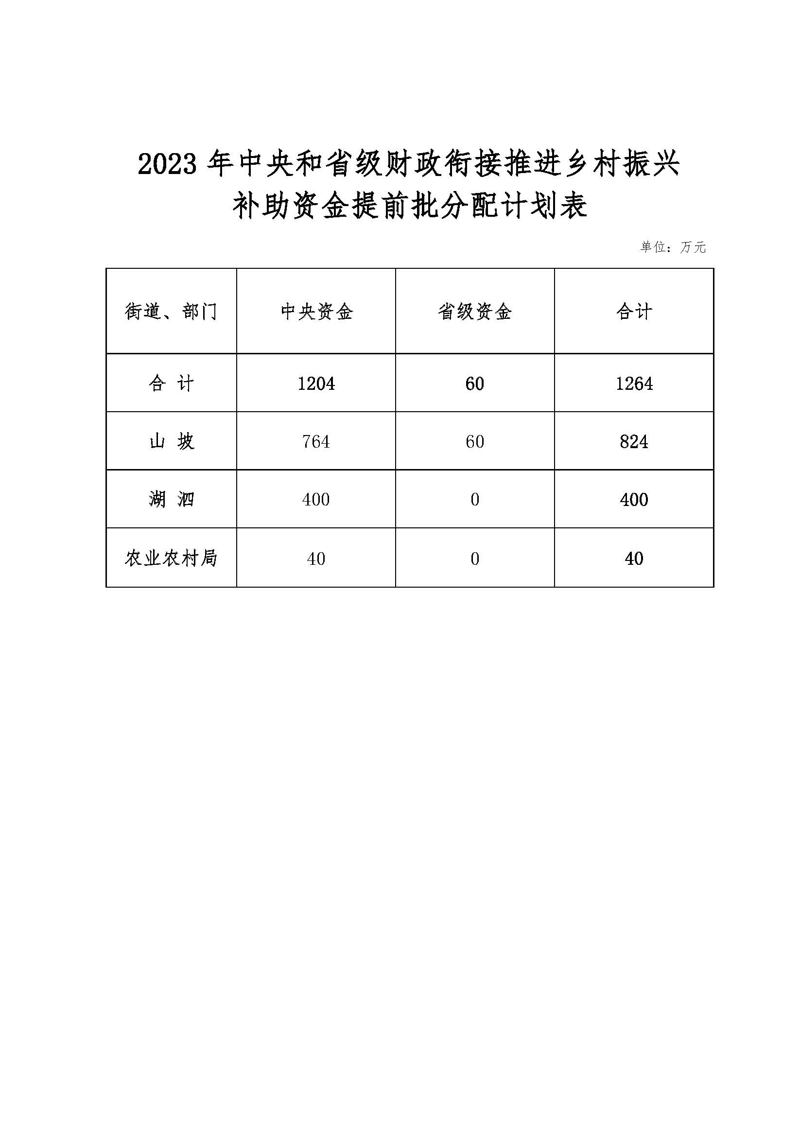 关于2023年中央和省级财政衔接推进乡村振兴补助资金提前批分配的公示公告