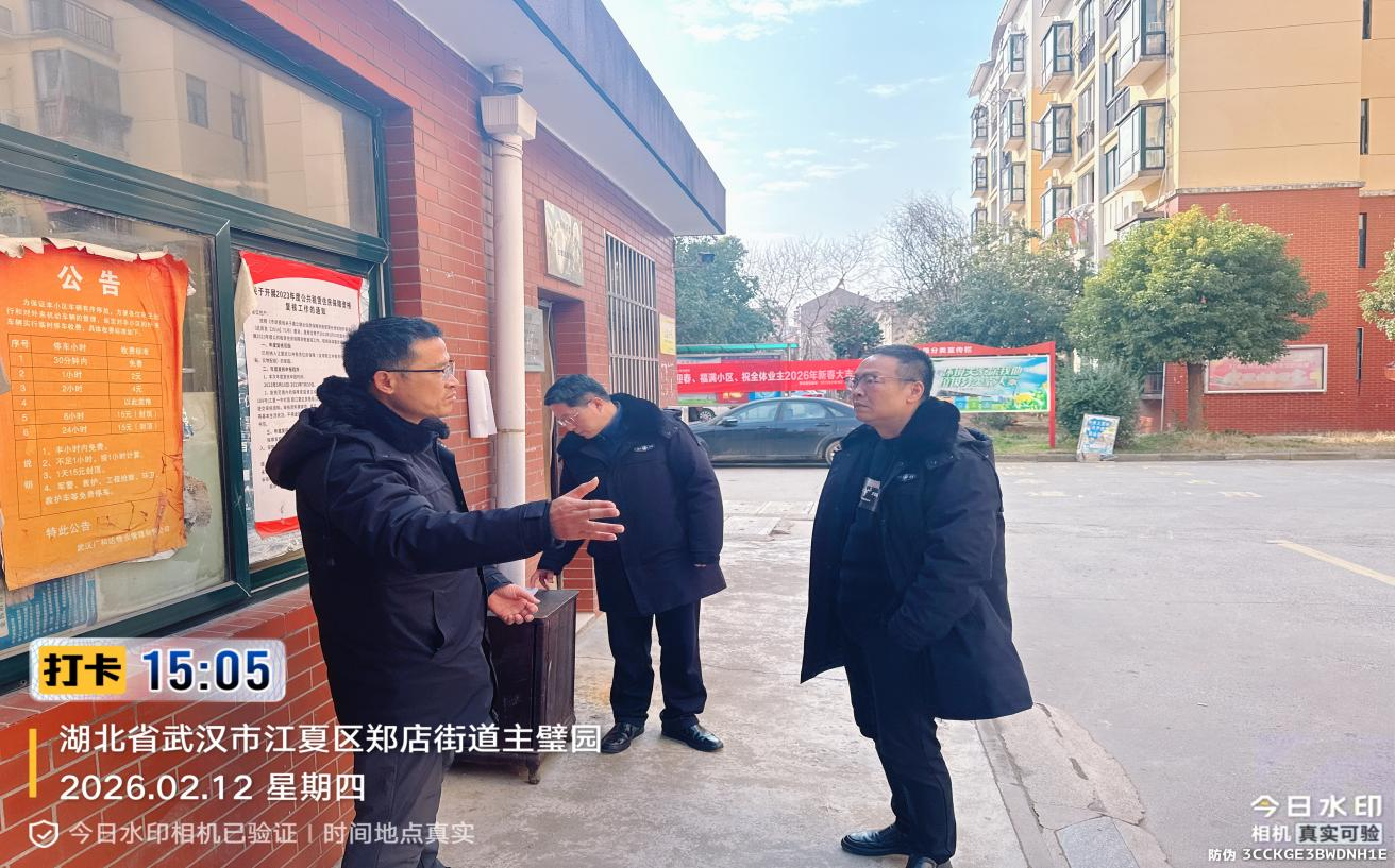 发布日期:2026-02-13 10:00 文章来源:江夏城市资产运营管理有限公司 编辑:周胜为切实保障春节期间资产安全稳定运行,全面防范各类安全隐患,2月12日,城运公司资产运营管理中心会同安保科组建专项排查小组,对公司名下位于关山桥、兴新街、北华街、城北小区等区域的商铺及自管小区开展节前安全大排查。