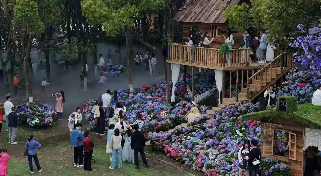 来到葫芦岛房车营地,正值绣球花盛放,前不久刚被央视聚焦报道。
