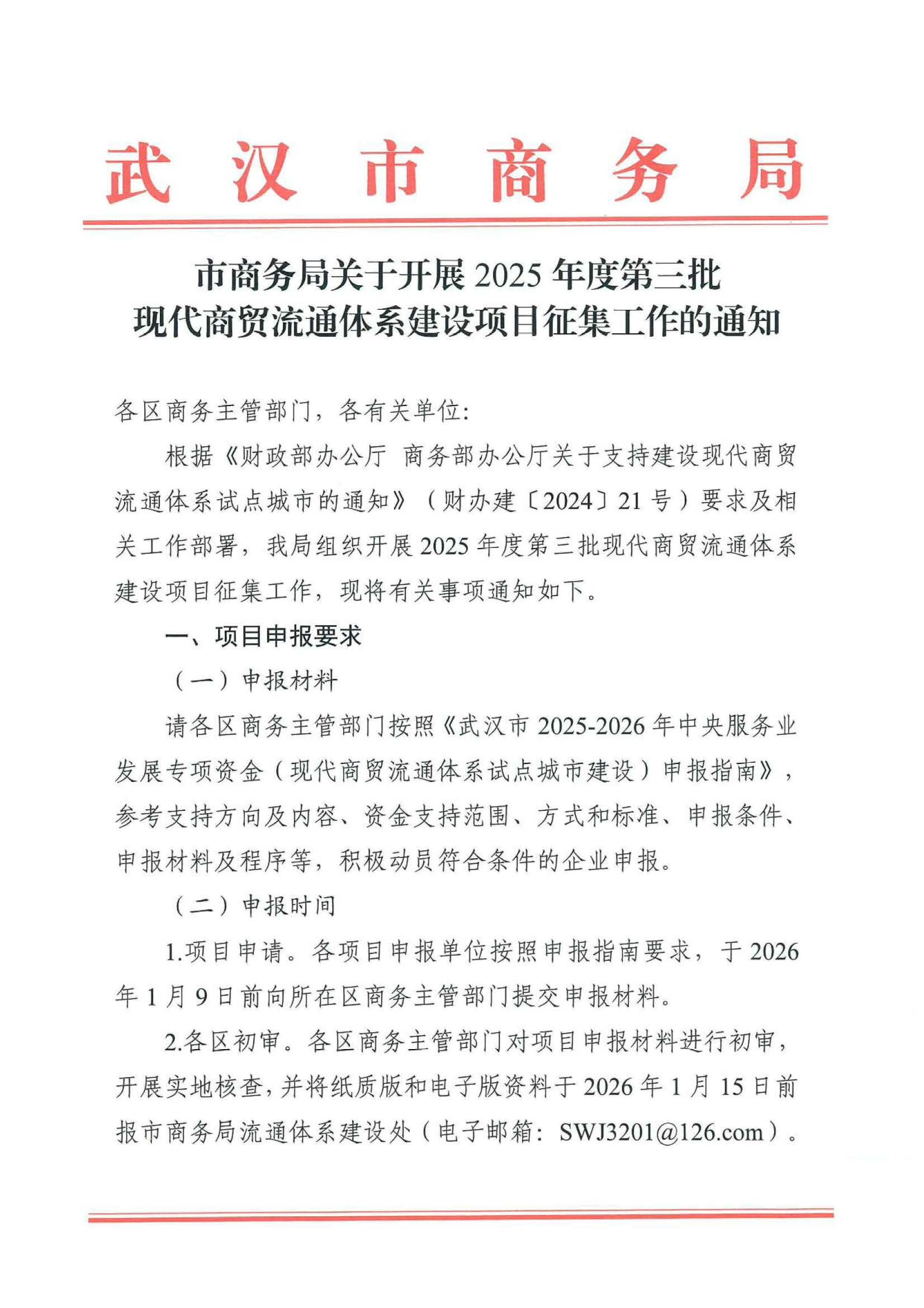 市商务局关于开展2025年度第三批现代商贸流通体系建设项目征集工作的通知